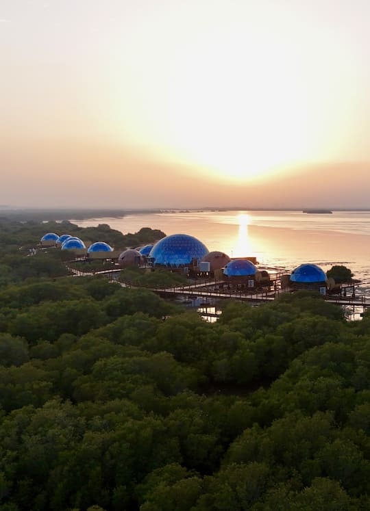 Luxeglamp à Umm Al Quwain, c’est du glamping version luxe et nature, dans de vrais dômes éco-conçus et confortables. À la recherche d’un séjour vraiment différent, les pieds (presque) dans l’eau, loin du bruit mais pas si loin de Dubai ? Direction Luxeglamp ! Installé au cœur des mangroves d’Umm Al Quwain, ce spot insolite combine hébergement design, engagement environnemental et coucher de soleil à tomber. « Ici, le vrai luxe, c’est la nature. Être au plus près d’elle, sans la dénaturer », résume parfaitement le General Manager des lieux. Une parenthèse hors du temps, parfaite pour déconnecter… sans compromis sur le confort.