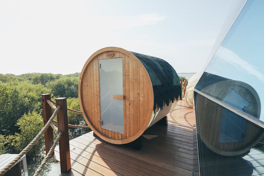 Aucun vis-à-vis, baies vitrées effet miroir, literie de qualité, déco naturelle… tout est pensé pour se sentir bien. Et comme la lumière entre tôt, des masques de nuit sont fournis. Petit conseil : ne fermez pas trop les rideaux, le lever du soleil vaut vraiment le réveil matinal.